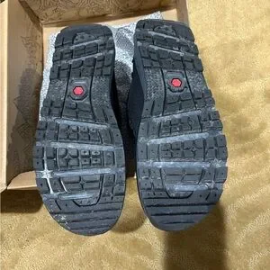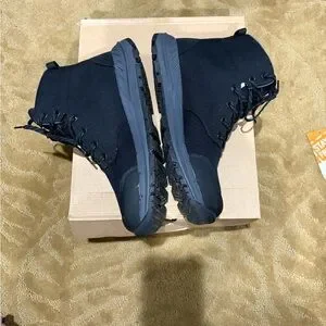Sleek black boots with rugged sole. Ideal for versatile wear. Durable and stylish, waterproof. Worn once.