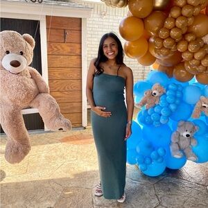 I wore this for my baby shower only. In perfect condition no signs of wear and tear!