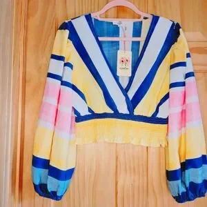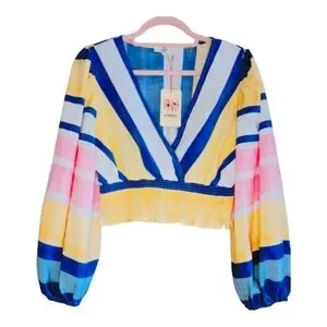 NEW Entro Beach Escapes Multi-Color Vneck Balloon Sleeve Crop Top