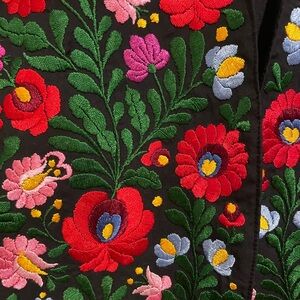 Bright Vibrant Floral Embroidered Flowers cover the entire jack . Fully lined. Shoulder pads. Fantast one if a kind piece. Great Condition