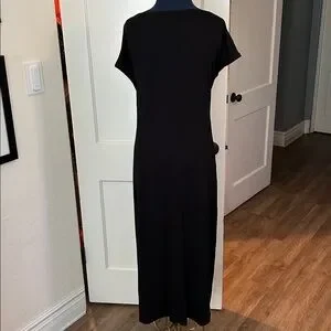 Super soft black maxi dress by Eileen Fisher, excellent used condition, ties in front, looks so cute paired with a jean jacket or kimono!
