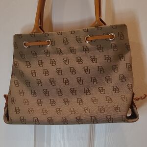 Authentic Dooney & Bourke Brown Monogram Shoulder Bag Leather Accents