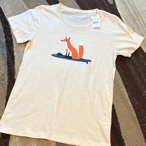 J. Crew Cream Tee with Orange Fox Design