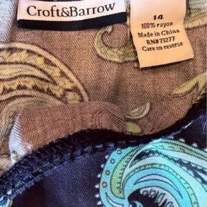 This Croft & Barrow Blue Peacock Paisley Print Skirt has a Side Zipper. It’s 100% Rayon giving it a comfortable and stylish look and feel.