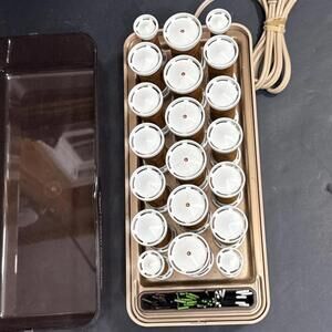 Clairol Custom CareSetter Hot Rollers Pageant Hair Curlers TESTED & WORKS! IN good preowned condition, the case lid does have a dent in it but does not affect the performance of the hair curlers