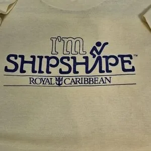 In like new condition Vintage 80s Royal Caribbean I'm Shipshape Single Stitch Yellow T-Shirt Large C5