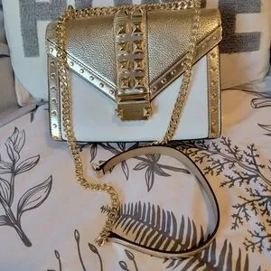 Michael Kors Metallic Gold and White Convertible Crossbody Bag NWT