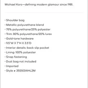 This NWT Michael Kors Metallic Monogram bag is convertible to arm/shoulder/crossbody.