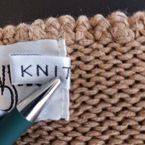 Cervelle Hand Knit Tan Sweater, Size Medium, Long Sleeve, Textured, Artisanal, Ribbed cuffs and hem. There are areas where you can see through the sweater, please see photos with sweater on mannequin. Very good pre-owned condition.