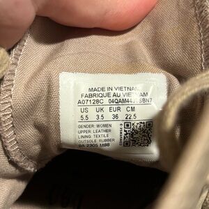 CONVERSE CHUCK TAYLOR high-top stone leather hi 70 sneakers. In GREAT used condition, soles show some signs of wear, one spot of imperfections on the right shoes and laces that is pictured. Still lots of life left! Size women’s 5.5 and ready for a new home!