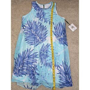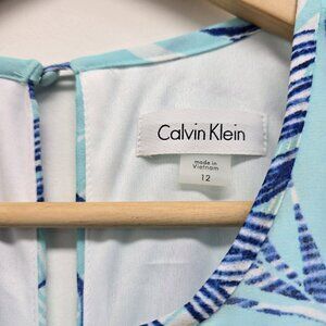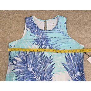 NWT Calvin Klein Palm Leaf Sleeveless Shift Dress Size 12 Lined Turquoise Blue