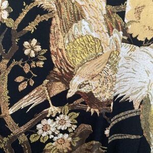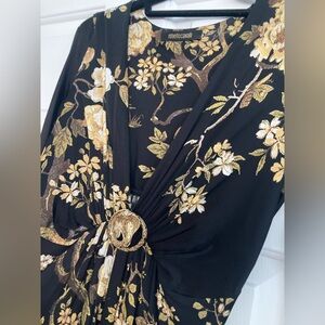 Roberto cavalli Stunning long sleeve dress with intricate floral and bird patterns. Features elegant gold accents on a black background. Perfect for sophisticated occasions. Gently used