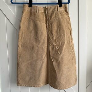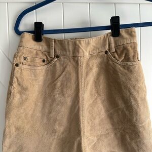 Tan corduroy A Line skirt, lined and has a zipper in the back.
