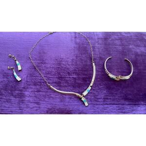 vintage Navajo necklace earring and bracelet sterling native opal turquoise