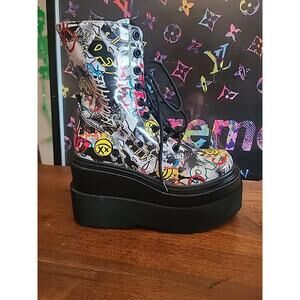 D’amelio Womens 7.5 Black Platform Graffiti Booties Punk