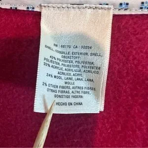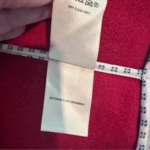 My absolute FAV coat but too big now. Wool blend feels like polar fleece. Size Large (oversized in style). True red color.
