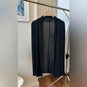 Classic open black cardigan by The Row. Lightweight fabric that drapes beautifully. Fabric tag removed. Feels like a soft viscose and cotton blend.
