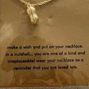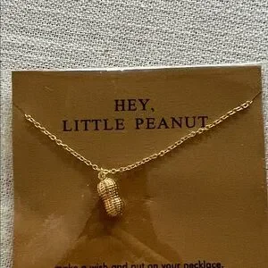 Elegant gold peanut charm necklace. A unique accessory for any outfit.