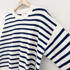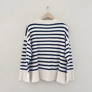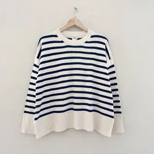 NWT J. Crew Striped Cotton Sweater Pullover Crew Classic Fisherman Nautical XL