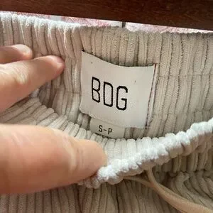 This BDG pull-on pant features a baggy fit, wide leg and a soft cord texture. Ideal for everyday style. The waistband is elastic with a drawstring.