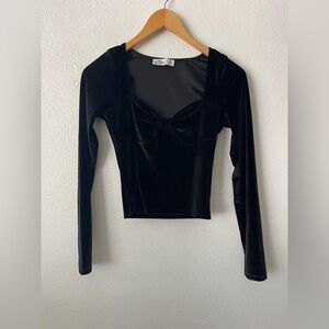 Hollister Black Velvet Long Sleeve Sweatheart Crop Top Vampy Goth Romantic Sz XS