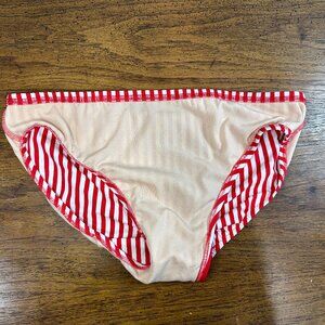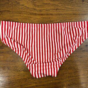 Harajuku men’s swim brief in a bold red and white stripe design