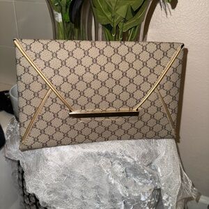 Classy elegant beige and gold envelope clutch