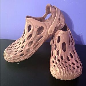 Super comfy Merrell Hydro Mocs in Burlwood colorway. Easy to wear and breathable. Made with BLOOM performance foam on the sole and a water-friendly EVA foam upper for durability.
