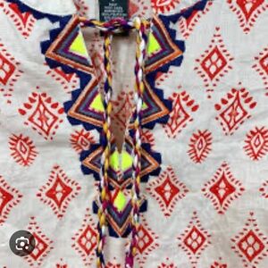 Elevate your style with this sleeveless white top featuring a vibrant red pattern. Perfect for casual outings or a day at the office.
