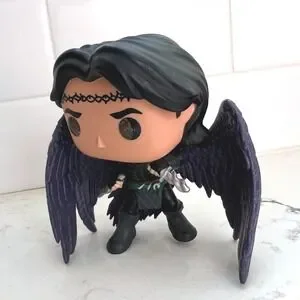 Custom made Hunt Alathar Funko for fans of Sarah J Maas' Crescent City series. Complete with striking wings that command attention. The brooding expression and detailed costume accurately reflect the character's complex nature, creating a must-have collectible for any fan. A perfect addition to your display, a standout piece on your desk, or a thoughtful gift for the fantasy enthusiast in your life.