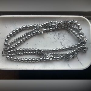 Ann Taylor Triple Strand Silver Pearl Necklace with Floral Accents