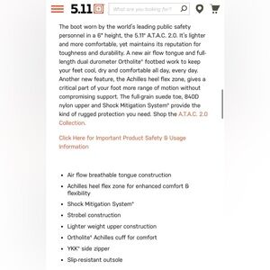 Durable tactical boots by 5.11. Ideal for rugged use.
