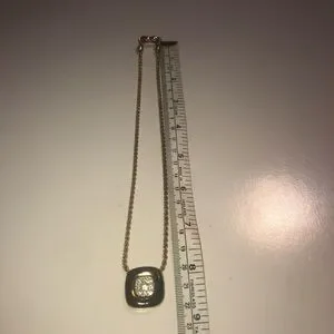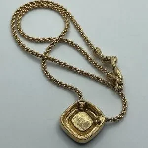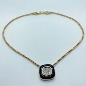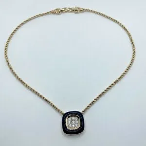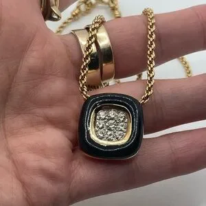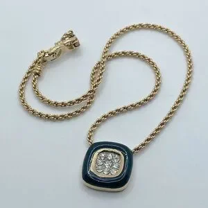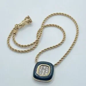 vtg Nina Ricci Black Enamel Rhinestone Square Pendant Gold Tone Necklace 17”