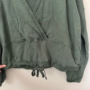 Stylish wrap sweater with a relaxed fit. Features a drawstring hem and hood. Perfect for casual wear.