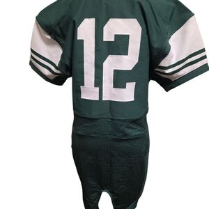 Dark green football jersey with white stripes and number 12. Nike swoosh on chest.