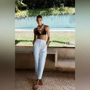 ZARA Elegant PANTS WITH A HIGH WAIST Light Blue Women's Pants