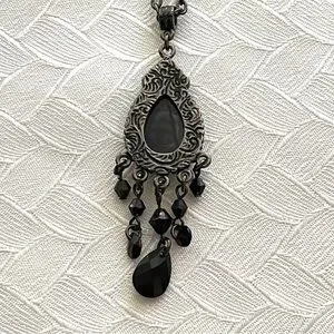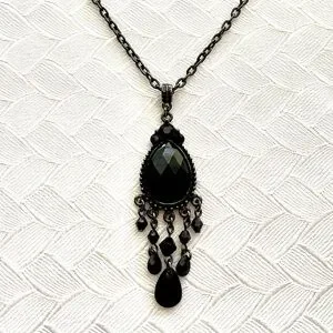 Chic necklace featuring a black teardrop pendant with dangling accents. Perfect for adding elegance to any outfit.