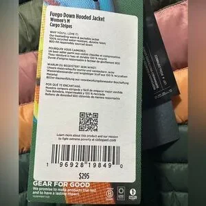 Cotopaxi Fuego Down Hooded Jacket - Cargo Stripes. Women’s Medium Size. NWT