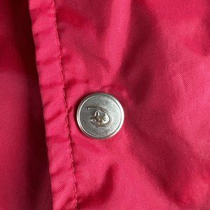 Nylon outer shell, polyester 85% and rayon 15% sweater lining. Sleeves are not lined. Full zip with buttons.