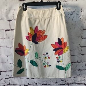 Boden Floral Applique Embroidered Cream A Line Twill Skirt Retro Womens Size 4
