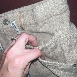 Features: Pull-on design, branded We The Free drawcord, utility pockets and seaming throughout, soft cotton-linen blend