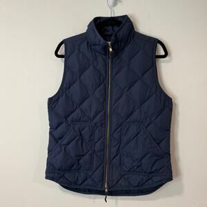 J. Crew Puffer Vest Equestrian Insulated Quilted Snap Pockets Navy Blue Medium