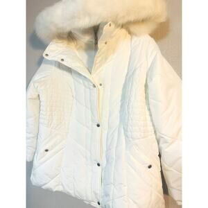 Susan Graver 1X Womens Winter Coat Jacket White Faux Fur Hood Quilted Puffer NWT