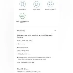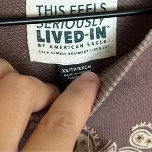 AMERICAN EAGLE AE Big Hug Crew Neck Sweatshirt, size XS, brand new with tags attached. Great condition! Please note this sweatshirt has factory made loose threading on the inner side as seen in the last photo.