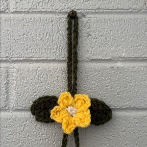 Add a touch of handmade charm to your car with this adorable crochet rear view mirror hanger! Featuring a cheerful yellow flower with green leaves and cute dangling flower accents, this piece brings cozy, cottage-style vibes wherever you go.