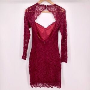 Nicole Miller Lace Sheath Long Sleeve Burgundy Dress Size Small