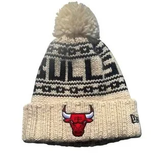 Keep your child warm and stylish with the New Era Bulls beanie. Featuring a cream and black design, this beanie is perfect for young fans. Great condition. No flaws. Smoke & Pet free home.