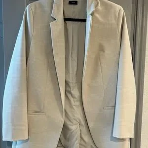 Elegant Cream Blazer with Plaid Detail