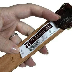 Classic sophistication meets craftsmanship in this genuine leather belt from Trafalgar. Made with hand-polished Cortina leather and featuring a brass-tone buckle, this belt adds a refined touch to both casual and formal looks.
