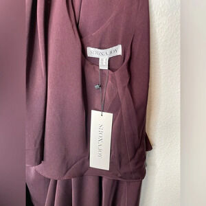 NWT Shona Joy Frill High Neck Maxi Dress Size 12 US Asymmetrical Hem color Aubergine. No notable flaws. Let me know if you have any questions!